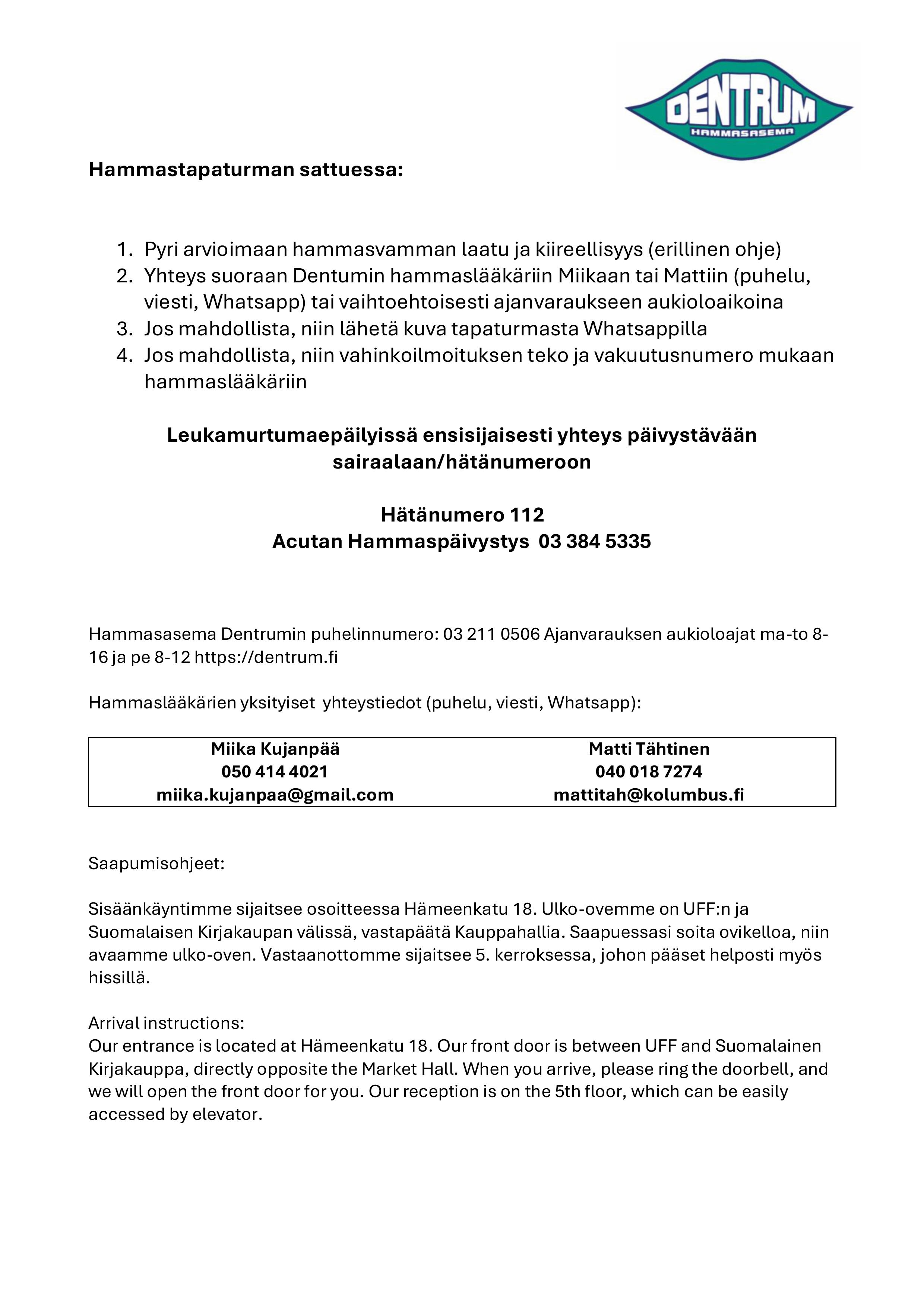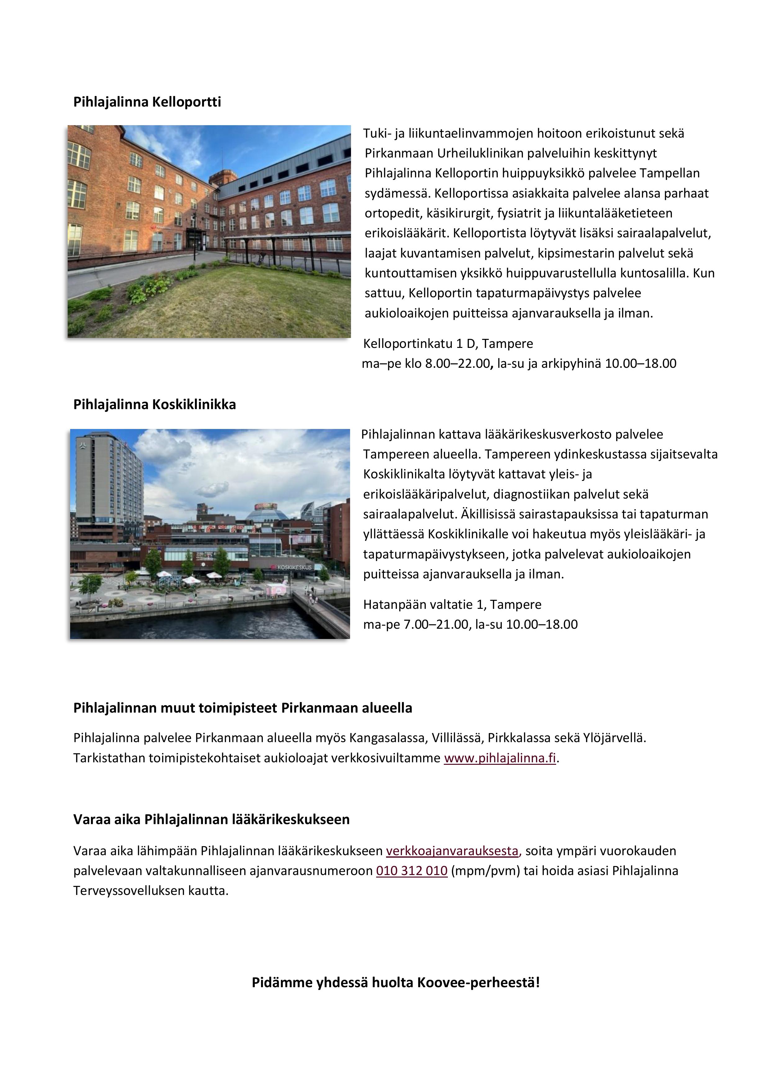 KOOVEE RY:N JÄSENTEN HOITOPOLUN KUMPPANEINA TOIMIVAT LÄHITAPIOLA PIRKANMAA JA PIHLAJALINNA SEKÄ HAMMASVAHINKOJEN OSALTA DENTRUM